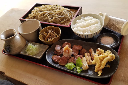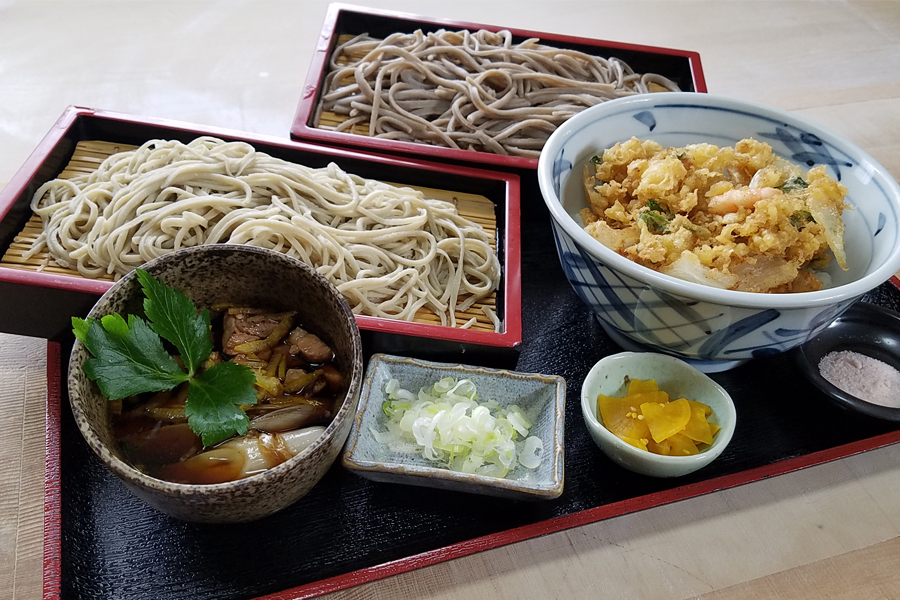 写真は柚子鴨つゆせいろのかき揚げ丼セット(蕎麦が二色)
