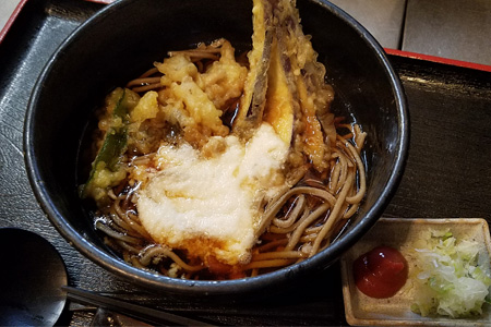 野菜天ぷらを乗せた温かいとろろ蕎麦!!